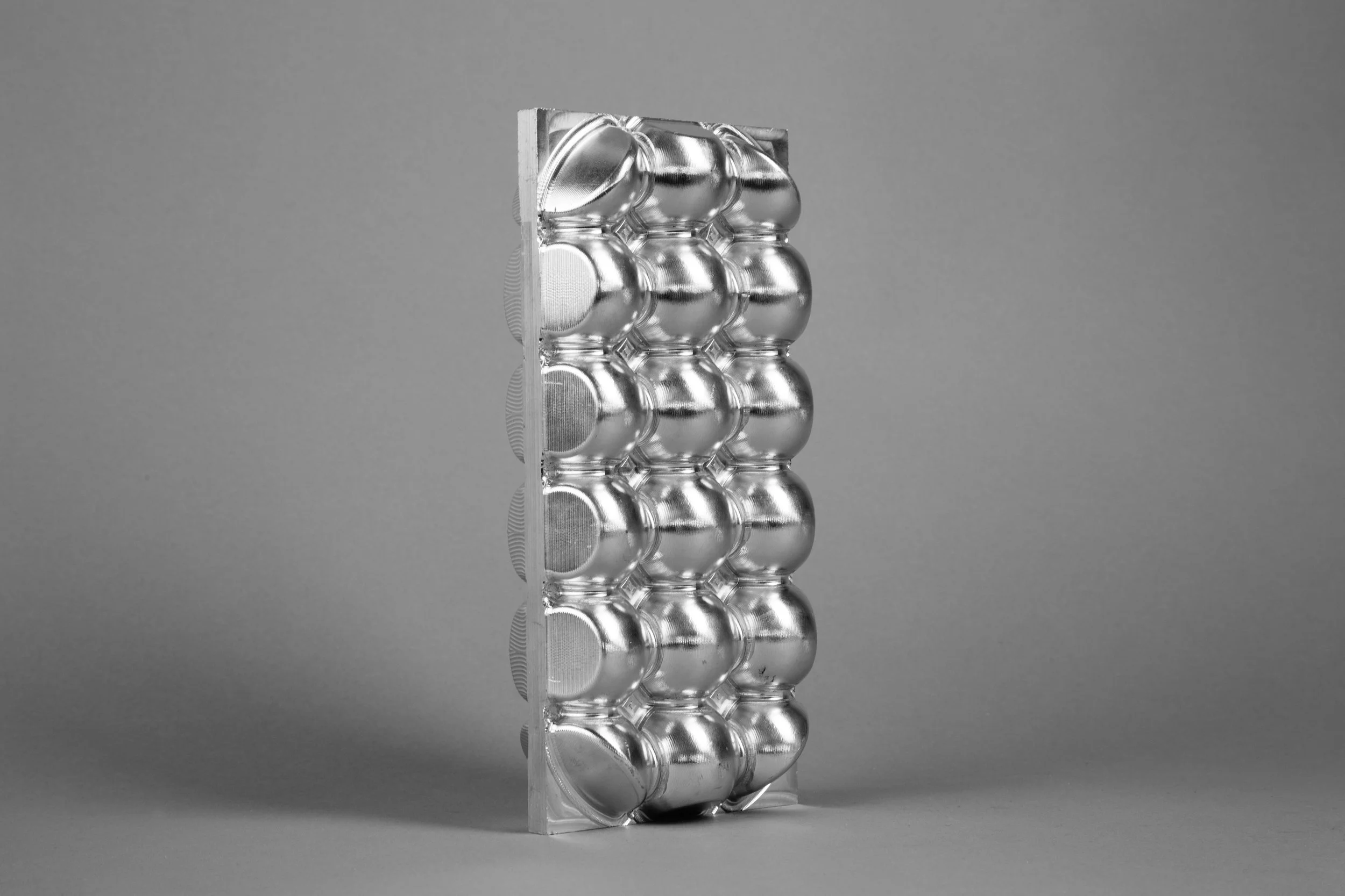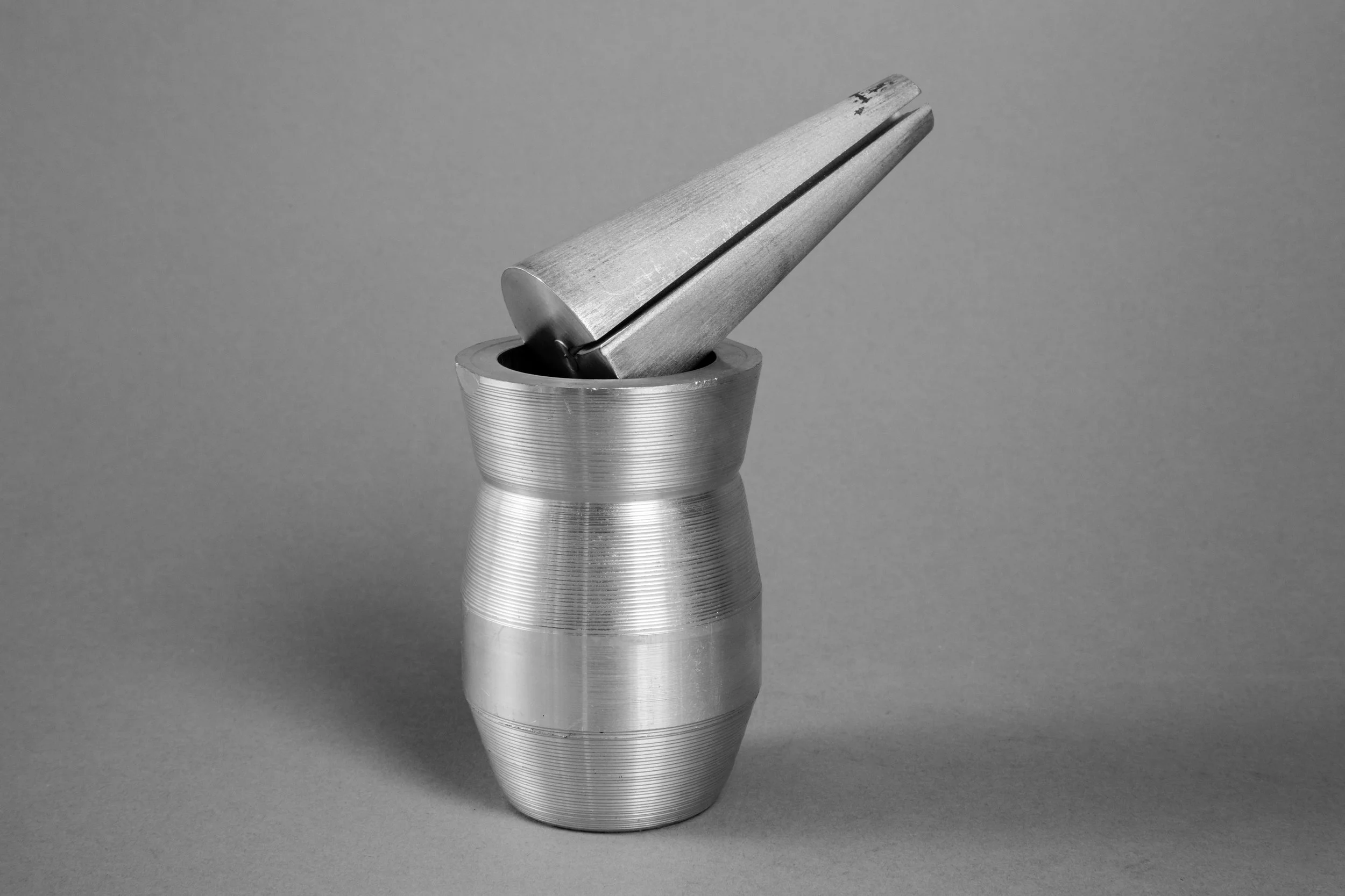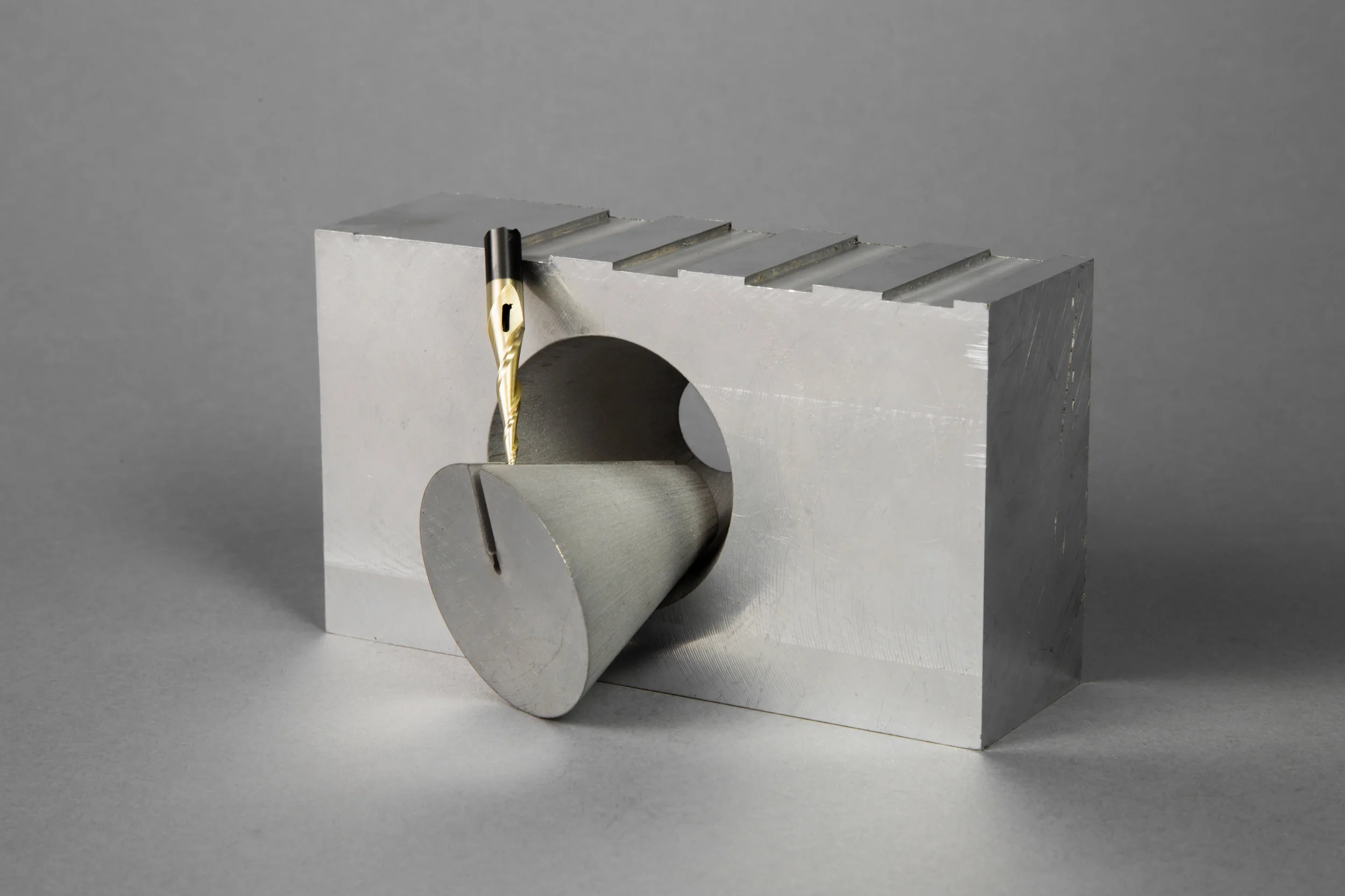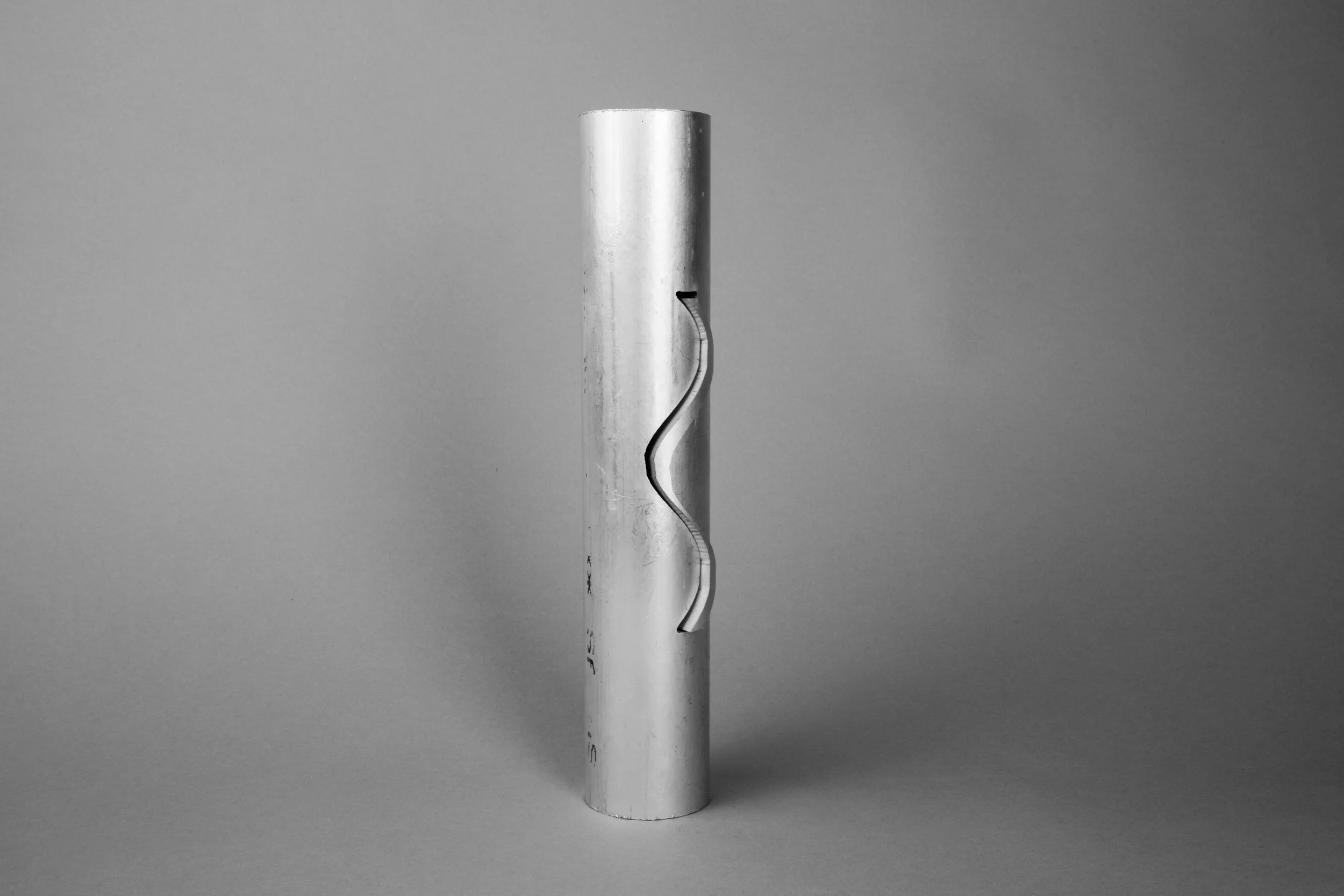 Ranging from playful and organic to geometric and hard-edged, my carving series is an exploration of three-dimensional form. I generated most of these forms by manipulating sketches and extrusions in 3D modeling software, sometimes cutting out large sections in order to reveal an object’s surface and structure simultaneously. On a more whimsical note, however, I decided to make a machined banana series by scanning the fruit or its peel with a laser, and then bringing the model in a 3D software environment for programming and machining. All of these pieces were machined out of solid aluminum or plastic on a Computer Numerical Control (CNC) machine. This abrupt, unexpected appropriation of a technology usually reserved for manufacturing and aerospace speaks to something very modern: by taking away its utility, the machining process becomes a collaboration between artist and machine, expanding the options for making meaning through code.